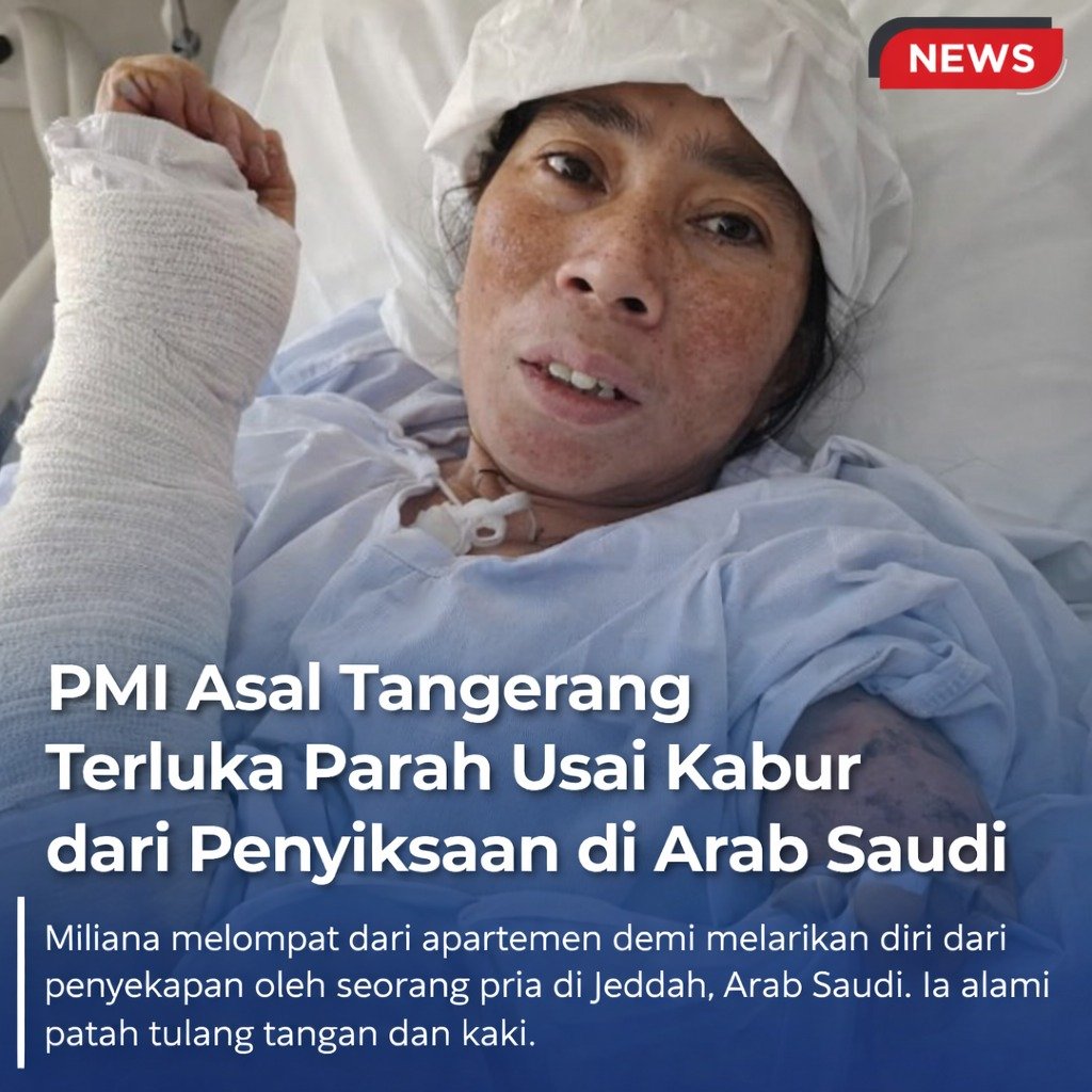 Seorang Pekerja Migran Indonesia (PMI) asal Tangerang bernama Miliana mengalami luka serius setelah mencoba melarikan diri dari situasi yang diduga penuh kekerasan di Arab Saudi.